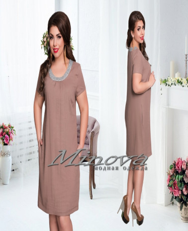 Платье №302-тем.бежевый
