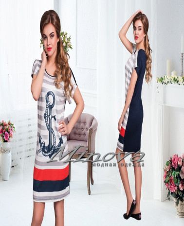 Платье №7461-серый полоска