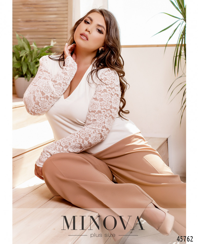 54-56 р-р: длина блузки 68см, длина рукава от плечевого шва 42см, обхват рукава 54см, ОГ - 116см, ОТ -118см, ОБ -124см.