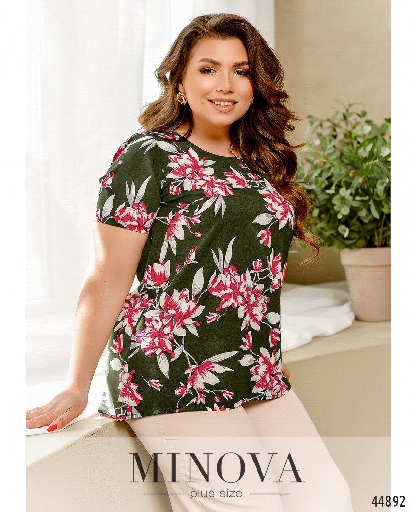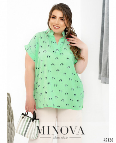 Легка повітряна блуза з коміром-стійкою і планкою без гудзиків спереду виглядає одночасно лаконічно і привабливо. Спущені короткі рукави з одворотами і грайливий принт додадуть родзинку в ваш образ.