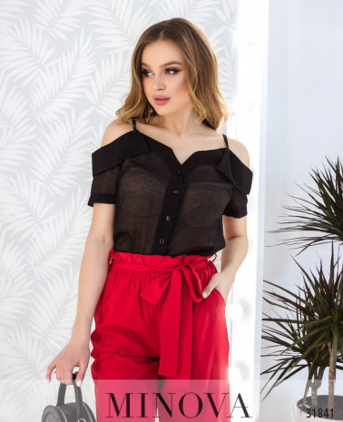 42 р-р: довжина блузи 63см, довжина рукава 24см, обхват рукава 34см, ОГ – 88см, ОТ – 86см, ОБ – 96см.
