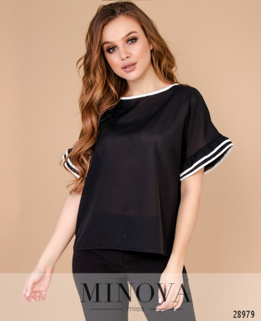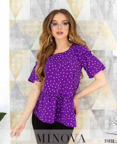 44 р-р: довжина блузи 66см, довжина рукава 16см, обхват рукава 31см, ОГ – 94см, ОТ – 90см, ОБ – 98см.