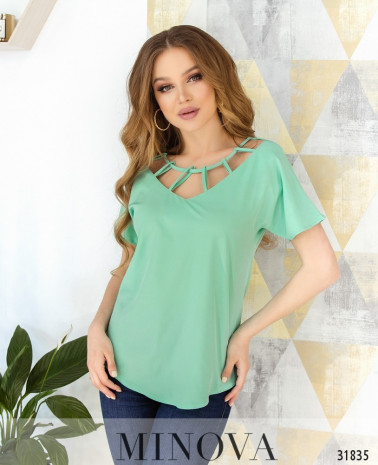 50 р-р: довжина блузи 69см, довжина рукава 19см, обхват рукава 34см, ОГ – 106см, ОТ – 102см, ОБ – 110см.