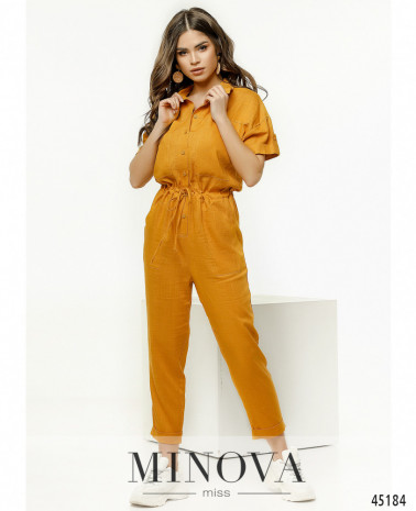 46 р-р: общая длина комбинезона 127см, длина рукава от горловины 4см, ОГ - 92см, длина брюк по внешнему шву с учетом пояса 85см, длина брюк комбинезона по внутреннему шву 59см, ОТ - 74см, ОБ - 104см.
