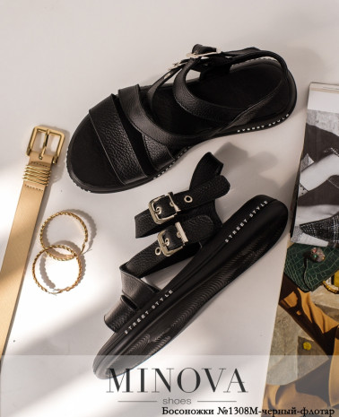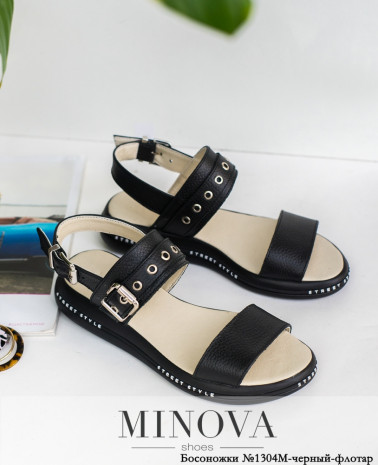 Стильные повседневные босоножки с двумя ремешками с пряжками. Отверстия укреплены люверсами. Верх кожаный, подошва литая, плотная, рифлёная, устойчивая, с декором по боковой поверхности.