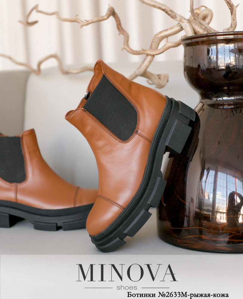 Кожаные ботинки с массивной подошвой с небольшим каблуком отлично сочетаются с объемным свитером, легкими платьями и любимыми джинсами. Модель застегивается на змейку, вшитую сбоку на внутренней части ботинок.