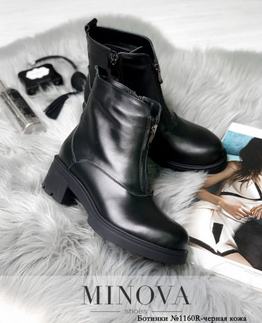 Демисезонні черевики з м\'яким утеплювачем, на підйомі – декоративна шнуровка, отвори укріплені люверсами, а верхній ряд – з металічними петельками. Ззаду зверху розташована петелька. Робоча змійка – по внутрішньому боці , від верха до підошви. Підошва з майже не вираженим каблуком та дрібно-різьбленим протектором, по ранту прикрашена металічними блискучими заклепками.