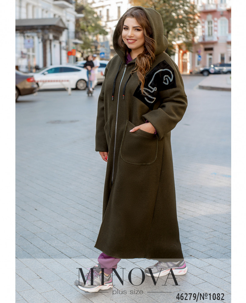 Уютный и удобный кардиган батал с капюшоном, накладными карманами по бокам и молнией по центру. На левой стороне груди – бархатная нашивка, украшенная узором из пайеток. Через капюшон пропущен шнурок. Кофта без подкладки, рукава без манжет.