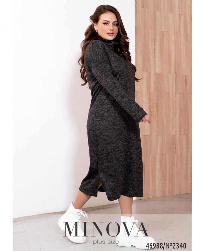 Лаконічна сукня-міді, що виконана з м'якої ангорової тканини, стане ідеальним доповненням вашого базового зимового гардеробу. Модель прямого силуету доповнена коміром-хомутом, довгими рукавами з приспущеною лінією плечей і невеликими розрізами з боків подолу.