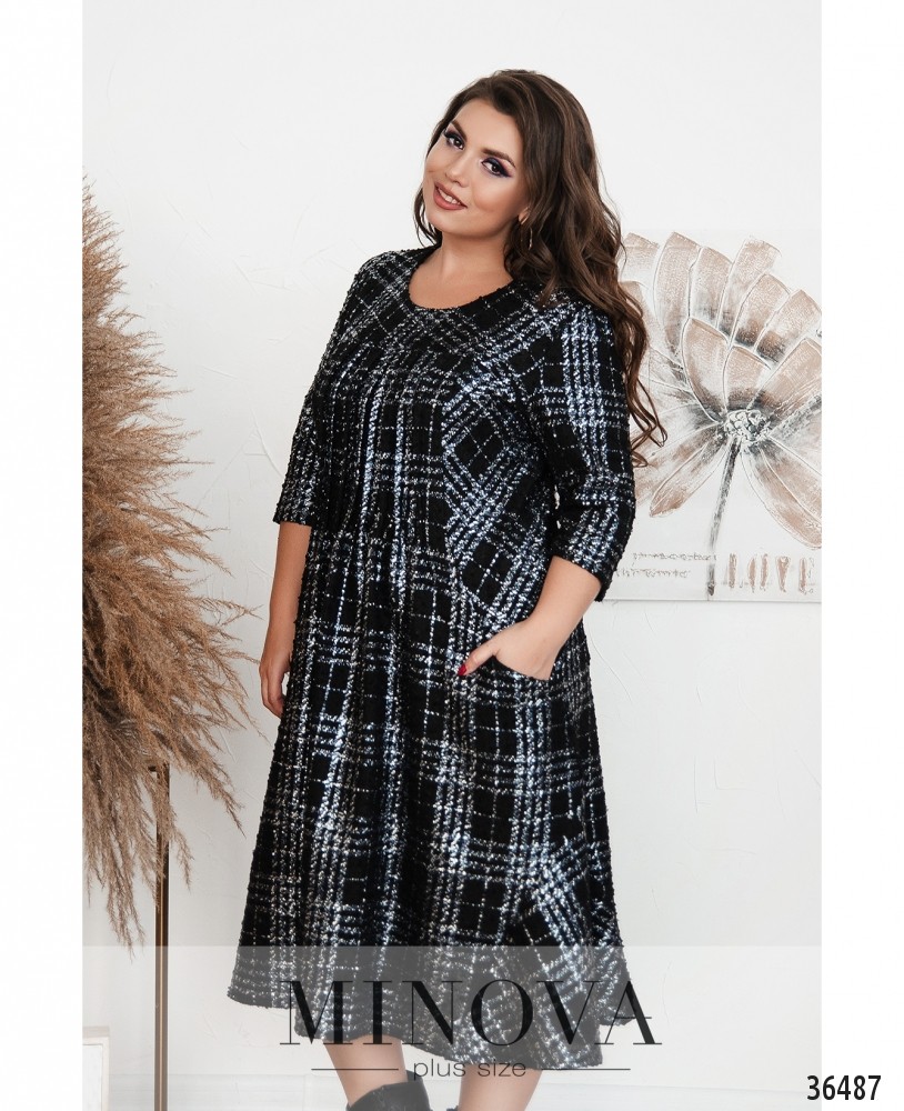 Мягкое повседневное платье батал из свежей коллекции Minova представлено в каталоге в нескольких вариантах: в крупную клеточку и в однотонной расцветке. Платье А-силуэта, на груди присобрано рядом продольных вытачек, подол расклешён, длиной приблизительно до колена. На груди небольшие вытачки. По бокам – врезные карманы, застёжек нет. Платье с нитями люрекса, которые делают образ более нарядным, особенно при ярком освещении. Рукава длиной ¾, без манжет. Прекрасный выбор для ношения дома или в неформальной обстановке, с любой удобной обувью на каблуке или плоской подошве.
