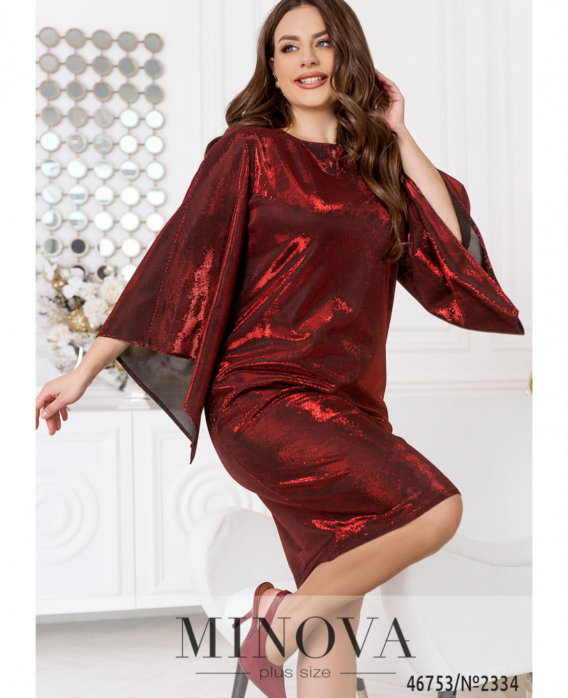 Яскрава і блискуча вечірня сукня, що виконана з сяючої тканини, дозволить створити ідеальний образ для зустрічі Нового року. Модель доповнена змійкою по спинці і рукавами фасону "кімоно" - вузькі у плеча і розширюються до зап'ясть. Під верхнім мерехтливим шаром підшита м'яка трикотажна підкладка.