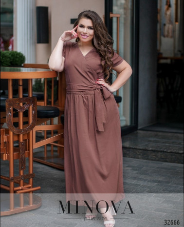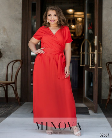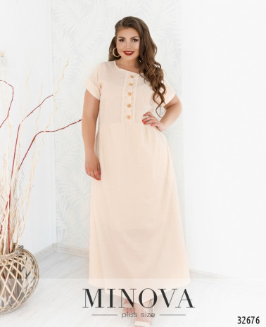 Романтична сукня батал без кишень, з відрізним подолом, рукава без манжетів. Застібка - блискавка, вшита по спинці. На грудях скульптуруючі виточки. Виріз горловини півкруглий.