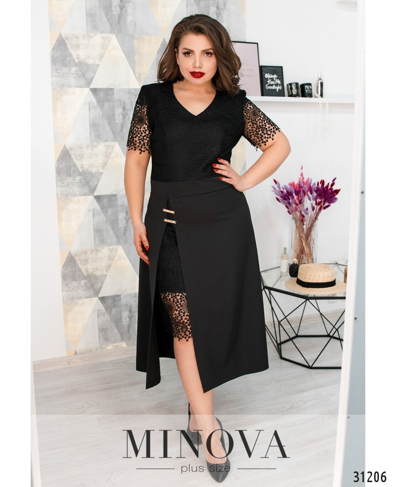 52 р-р: длина платья 97см, длина рукава 34см, обхват рукава 44см, ОГ – 124см, ОБ – 124см.