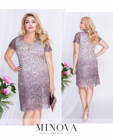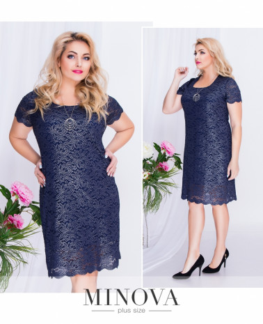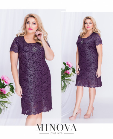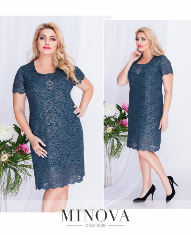 Прямое кружевное платье на подкладке, длиной до середины колена с круглым вырезом и коротким рукавом. Разрез до середины бедра сзади не сковывает движения. Платье изготовлено из плотной кружевной эластичной ткани с отливом.