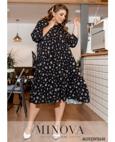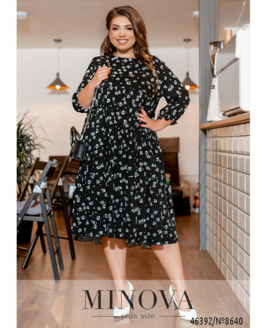 Нежное женственное платье А-силуэта с несколькими рядами воздушных оборок – универсальное решение для любой модницы. В нем вполне можно появиться как в офисе, так и на корпоративе или празднике. Застёжек и карманов нет, вырез горловины полукруглый, в рукава на месте манжет вшиты тонкие резинки.