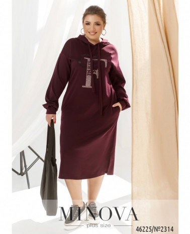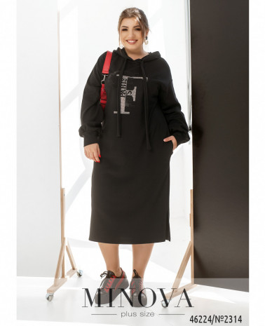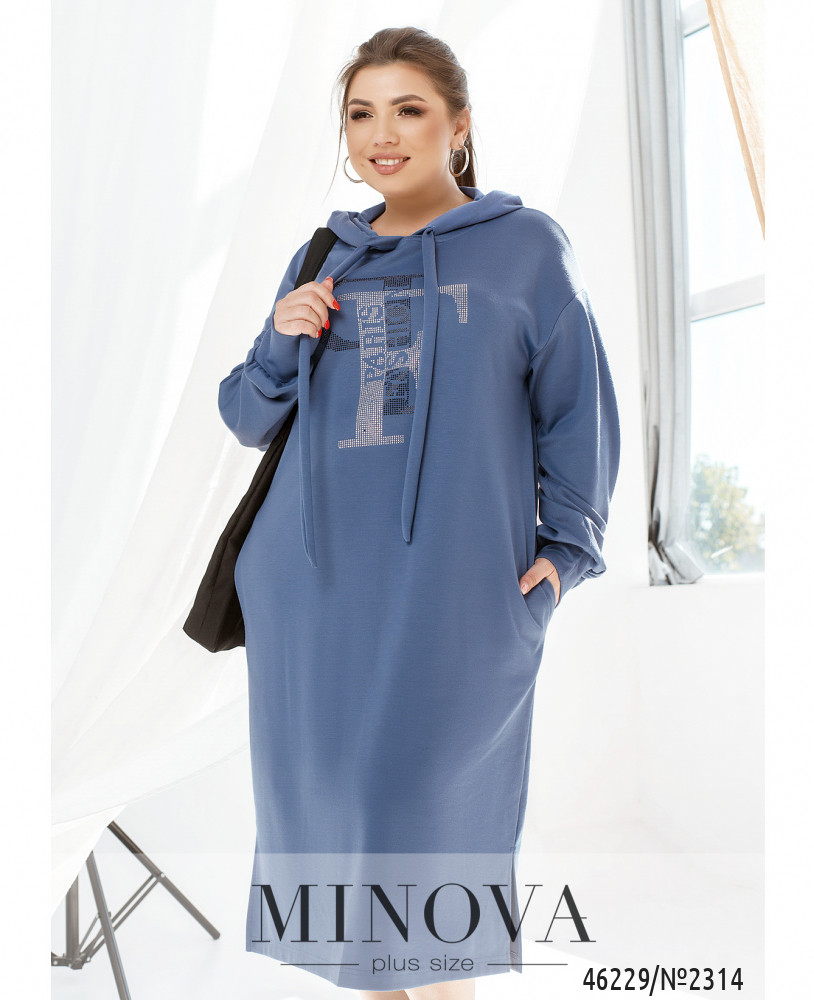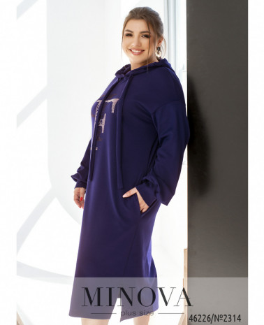 Стильна спортивна сукня може стати улюбленою річчю для жінки, яка цінує практичність і не забуває про модні тенденції. Модель доповнена довгими рукавами з манжетами і приспущеною лінією плечей, а також кишенями в бічних швах і капюшоном. Сукню прикрашає декоративна аплікація спереду.