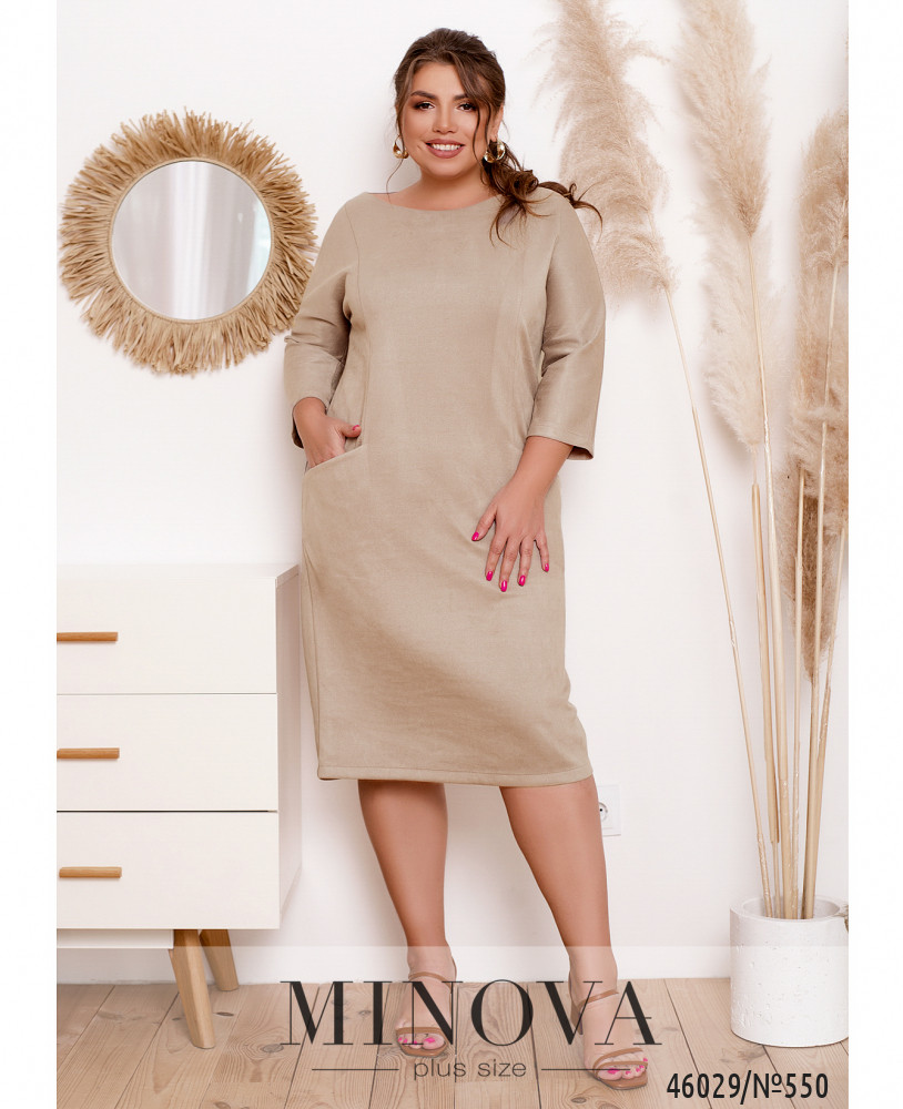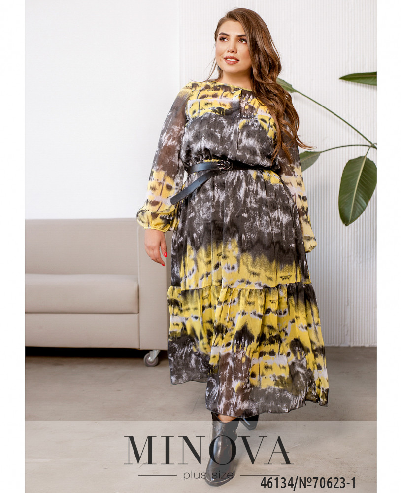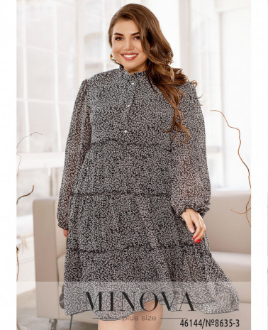 Ніжна та легка сукня батал з м'яким підкладочним шаром, комірець - невелика стійка, застібка - ряд гудзиків спереду на планці. Рукава без підкладки, зі вшитими до манжетів резинками.