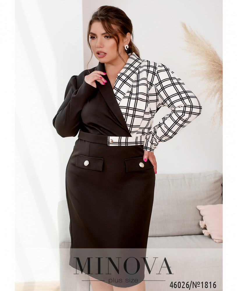 Елегантна сукня-міді приталеного силуету, внесе в образ трішки кокетства, романтизму і жіночності. Ліф цієї моделі підшитий на запах і доповнена коміром з лацканами і довгими рукавами з манжетами. Родзинку додають контрастні тканини, які були використані при пошитті цієї моделі.