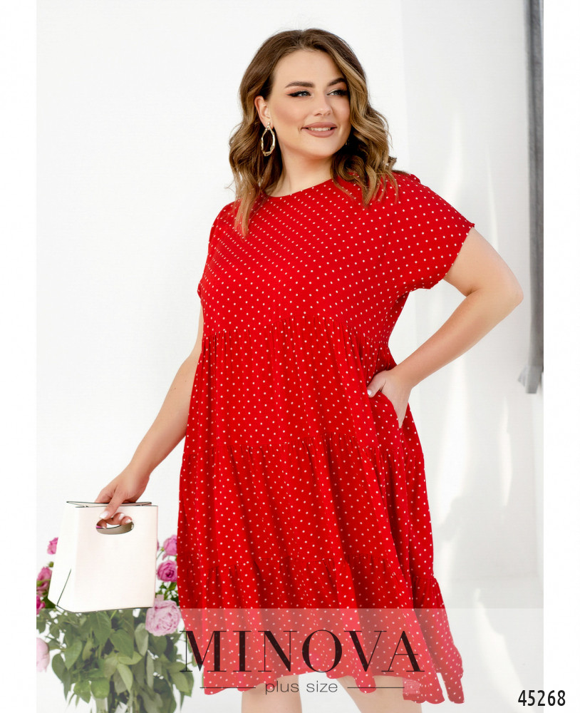 Романтичное платье в горошек с врезными карманами из легкой невесомой ткани подойдет и для прогулки с друзьями, и для поездки за город. Благодаря просторному А-силуэту вы будете чувствовать себя свободно и комфортно, а подол, состоящих из нескольких слоев оборок, сделает ваш образ кокетливым и женственным.