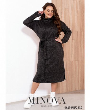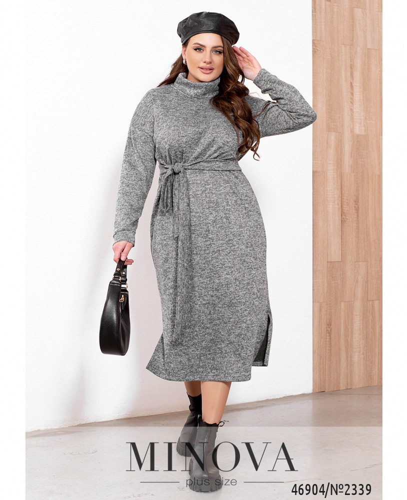 Лаконічна сукня-міді, що виконана з м'якої ангорової тканини, стане ідеальним доповненням вашого базового зимового гардеробу. Модель прямого силуету доповнена коміром-хомутом, довгими рукавами з приспущеною лінією плечей і невеликими розрізами з боків подолу.