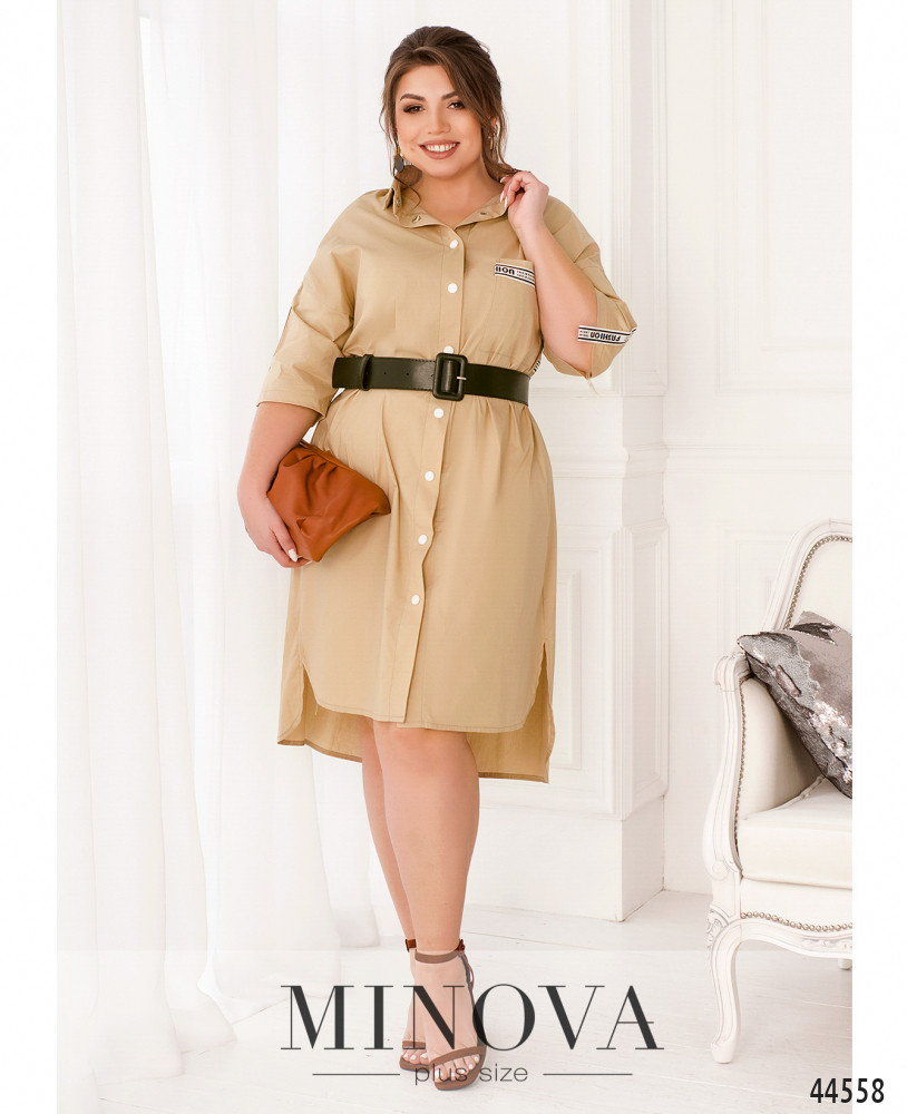 Нежное и яркое платье батал с отложным воротничком и рядом пуговиц спереди на планке, от воротничка до низа подола. По бокам - карманы в шве. Подкладки нет. Рукава со вшитыми в запястья резинками и небольшими оборками-манжетами.