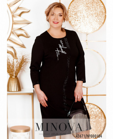 Стильна сукня батал зі вставками оксамиту та мережива на подолі. Рукава без манжетів. Застібок та кишень немає. На грудях виточки. Виріз горловини півкруглий.