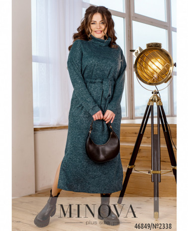 Тепла комфортна сукня, що виконана з м'якої ангори софт, дозволить модницям в будь-яку погоду і пору року виглядати жіночно і привабливо. Модель з довгими приспущеними рукавами і високим коміром доповнена накладними кишенями, поясом на кулісці і розрізами на подолі з боків. Таку сукню можна носити як з кросівками або грубими черевиками, так і з витонченими туфлями або ботильйони на підборах.