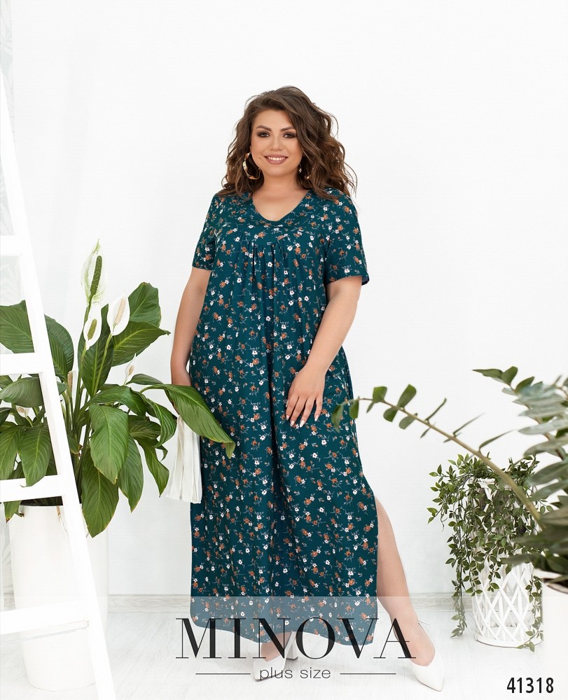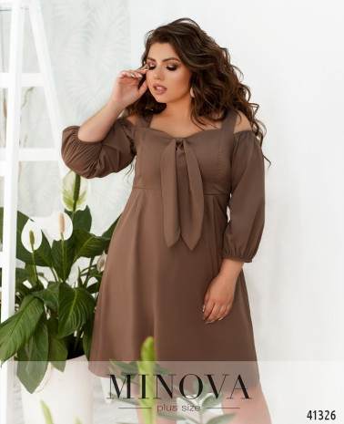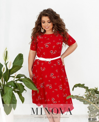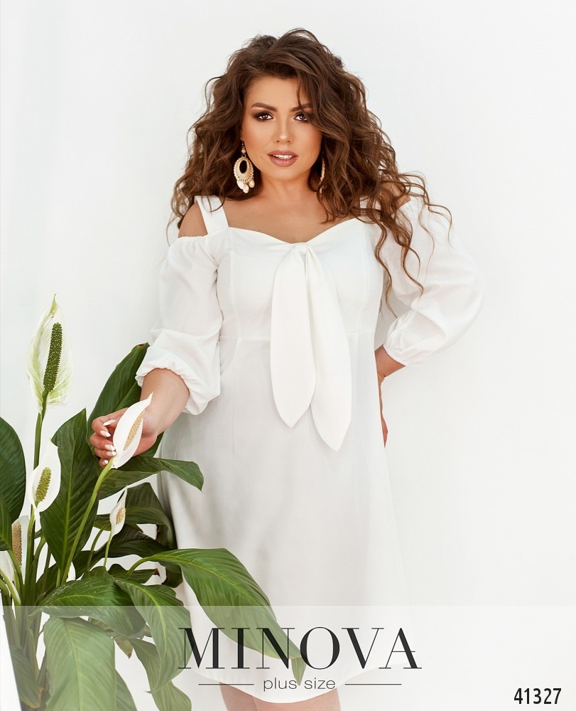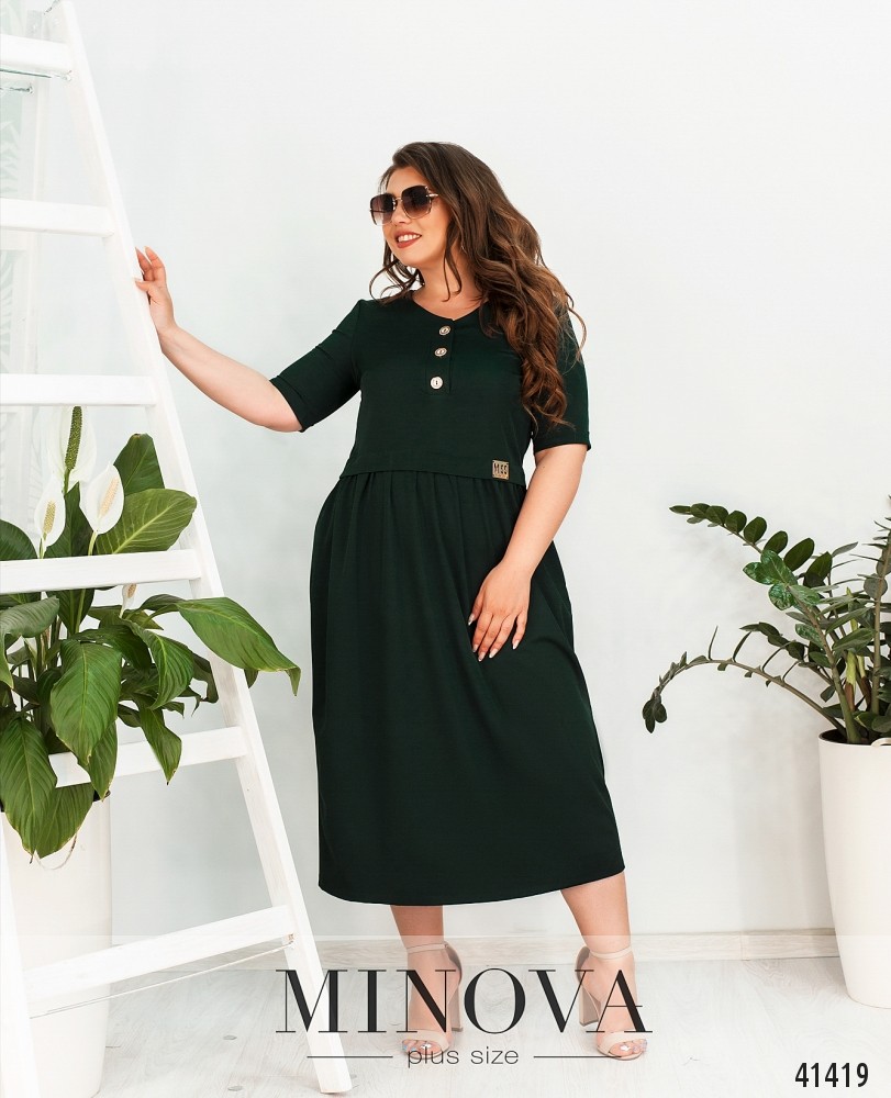 Романтичное платье батал без карманов, с отрезным подолом, рукава без манжет. Застёжка - молния, вшитая по спинке. На груди скульптурирующие вытачки. Вырез горловины полукруглый.