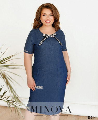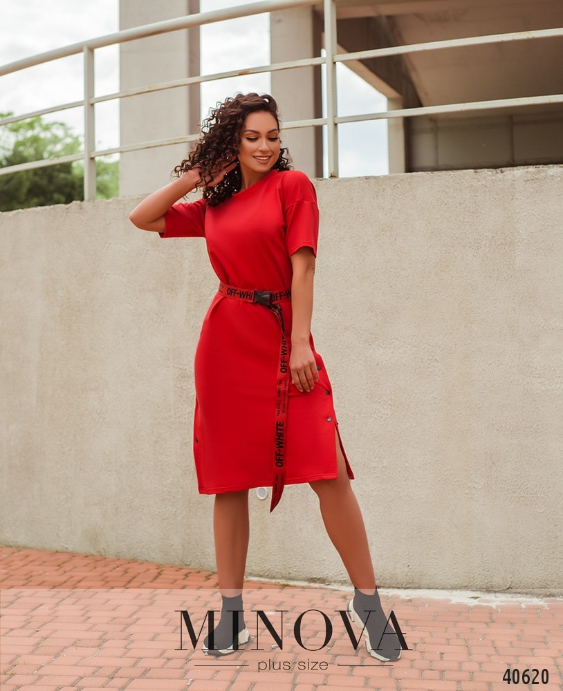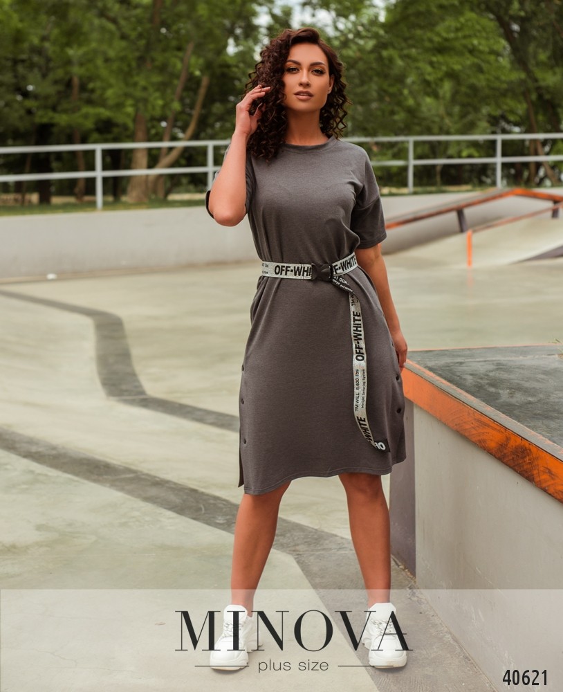 Стильна та зручна повсякденна сукня батал з кнопками-застібками з обох боків подолу. Без кишень та інших застібок, рукава без манжетів, виріз горловини півкруглий. Є поясок.