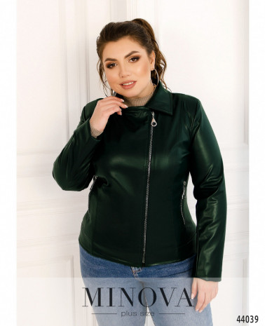 Стильна та актуальна куртка фасону "косуха", з діагональною блискавкою та різьбленими лацканами. З боків - прорізні кишені під блискавкою. Рукава без манжетів. Із м'якою підкладкою.