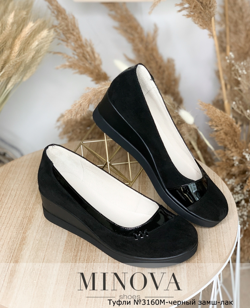 Туфли №3160М-черный замш-лак