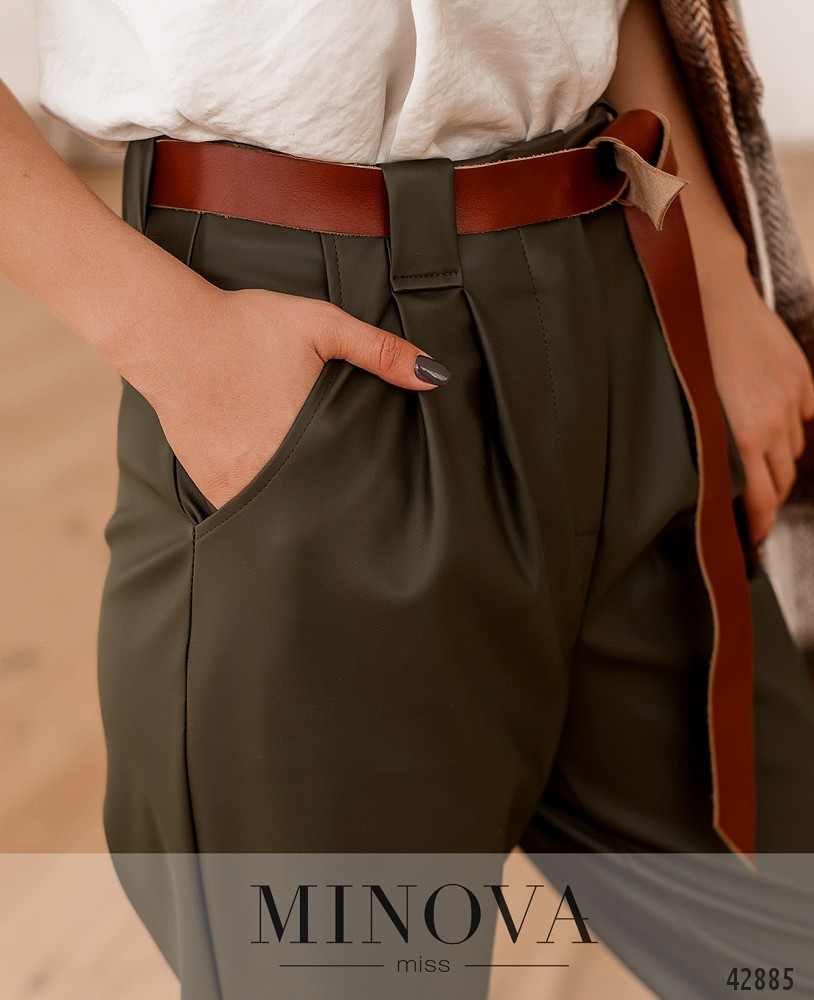 44 р-р: длина брюк по внутреннему шву 70см, длина брюк по внешнему шву с учетом пояса 97см, ОТ - 74см, ОБ - 96см.