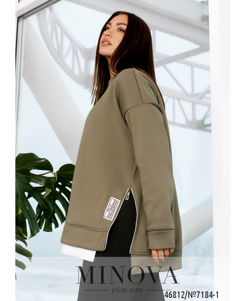Когда нужно согреться и при этом выглядеть стильно, свитшот — всегда отличный выбор. Эта минималистичная модель привлекает внимание благодаря деталям: ассиметричному низу, удлиненному по спинке, актуальным длинным рукавам с манжетами и приспущенной линией плеч, белой планке, подшитой спереди внизу и имитирующей второй слой одежды, а также удобные разрезы по бокам, в которые вставлены функционирующие змейки.