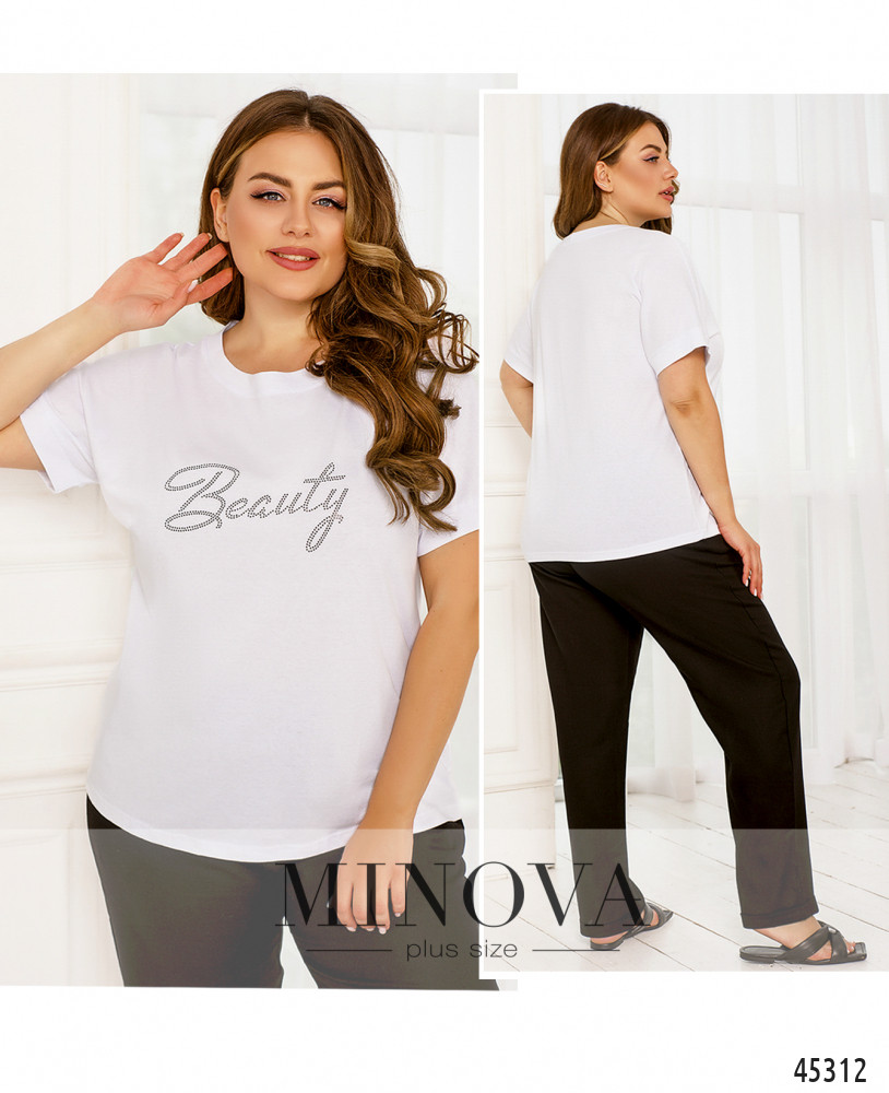 Базовая минималистичная футболка с коротким рукавом и полукруглым вырезом горловины выполнена из мягкого натурального хлопка. Эта модель, украшенная сверкающей декоративной надписью на груди, станет идеальным дополнением вашего базового летнего гардероба.
