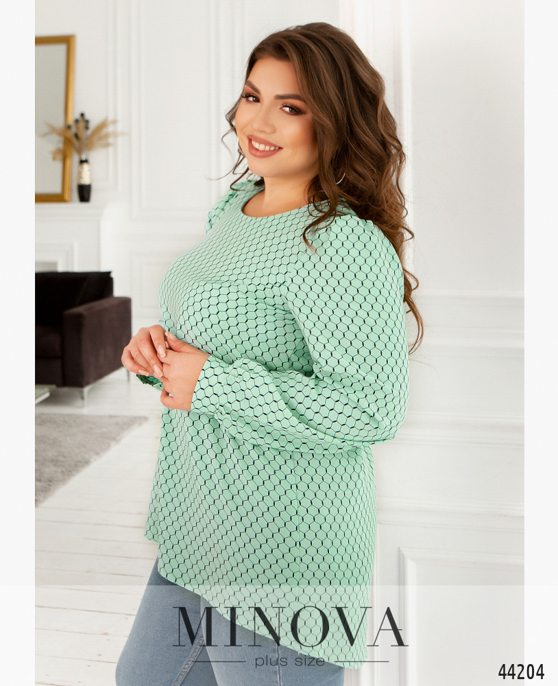 66-68 р-р: длина блузки 61-75см, длина рукава от плечевого шва 66см, обхват рукава 55см, ОГ - 138см, ОТ -145см, ОБ -150см.