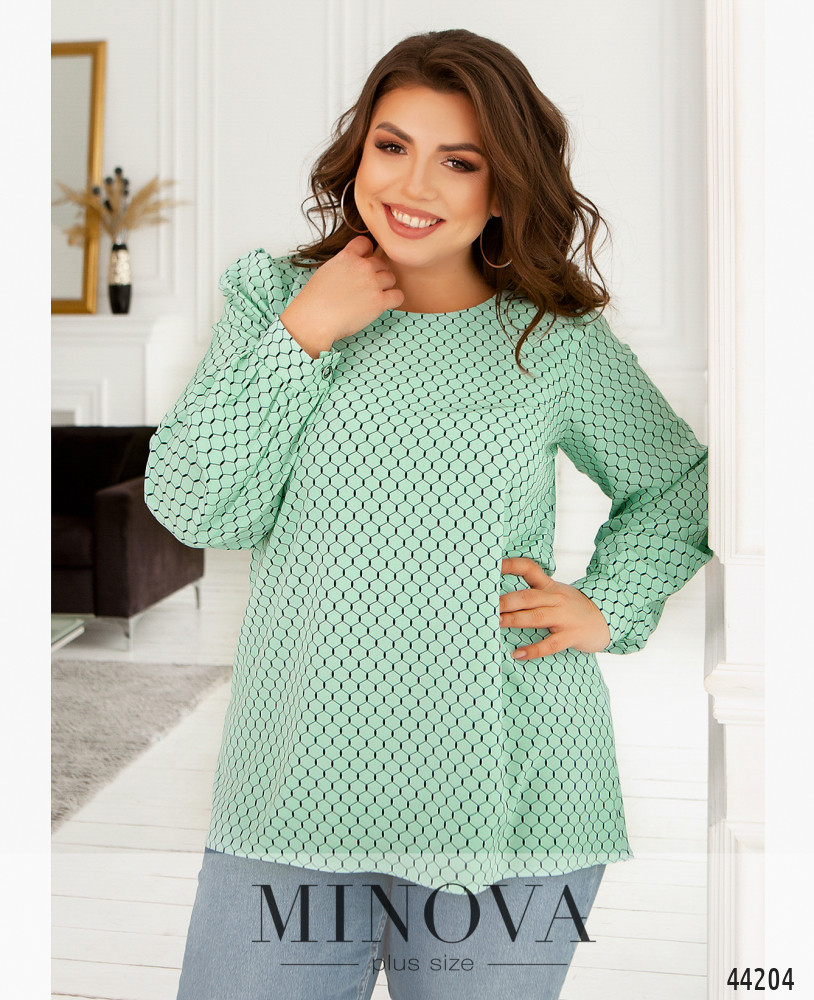58-60 р-р: длина блузки 59-73см, длина рукава от плечевого шва 64см, обхват рукава 49см, ОГ - 122см, ОТ -129см, ОБ -134см.