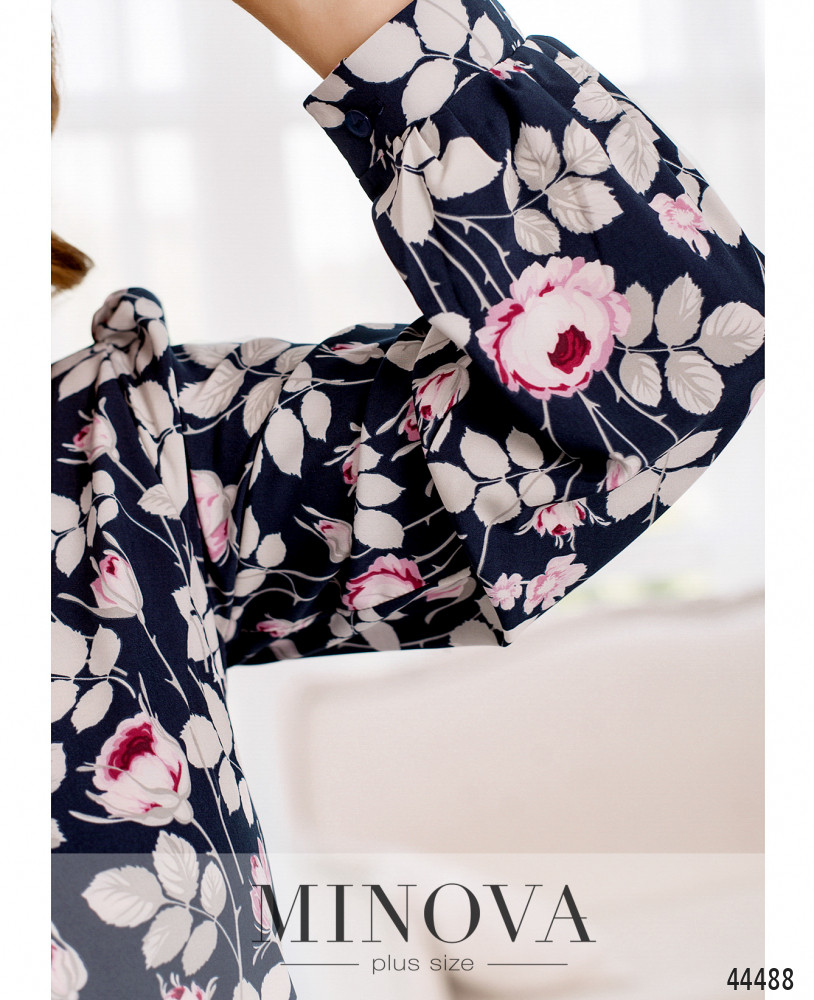 Элегантная и нежная блуза без застёжек и карманов, с полукруглым вырезом горловины. На груди диагональные вытачки. Рукав с узким манжетом, на манжетах по одной пуговке. Подол чуть длиннее по спинке.