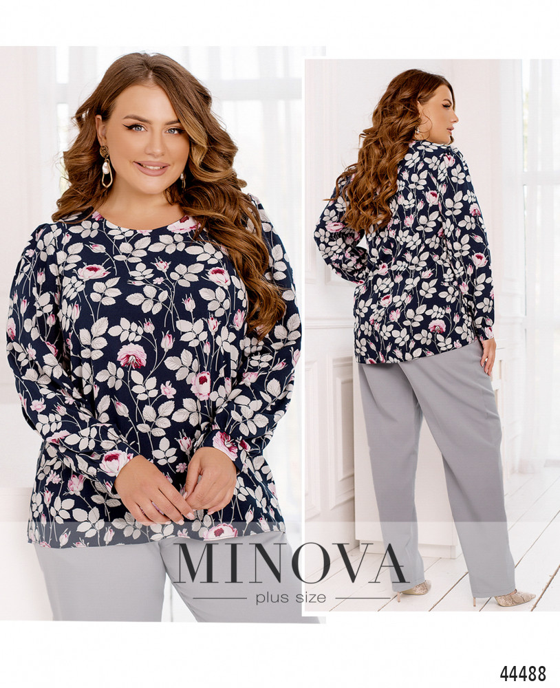 58-60 р-р: длина блузки 59-73см, длина рукава от плечевого шва 64см, обхват рукава 49см, ОГ - 122см, ОТ -129см, ОБ -134см.