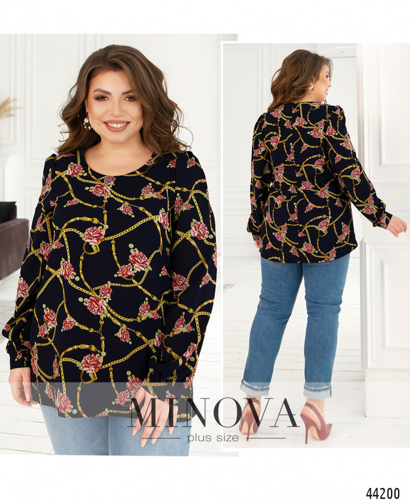 46-48 р-р: длина блузки 56-70см, длина рукава от плечевого шва 61см, обхват рукава 40см, ОГ - 98см, ОТ -105см, ОБ -110см.