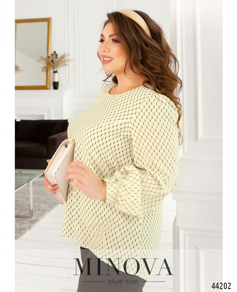 58-60 р-р: длина блузки 59-73см, длина рукава от плечевого шва 64см, обхват рукава 49см, ОГ - 122см, ОТ -129см, ОБ -134см.