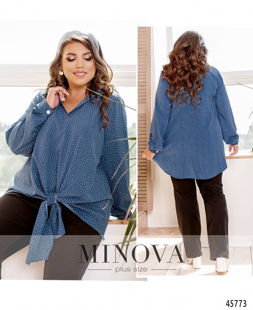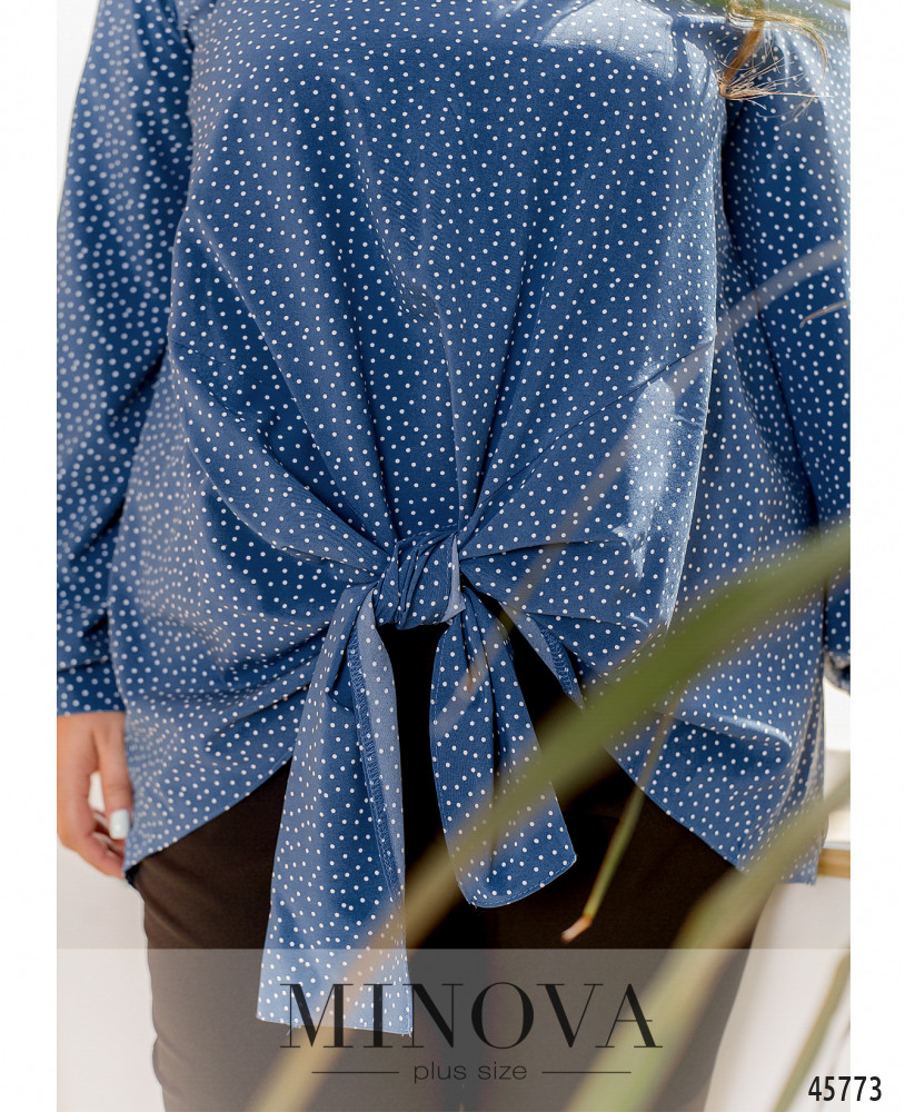 Яркая стильная рубашка с воротником и длинными рукавами с манжетами создает не только красоту, уверенность и комфорт, но и подчеркивает индивидуальный стиль. Изюминкой данной модели является ассиметричный подол, удлиненный по спинке, и завязки спереди.