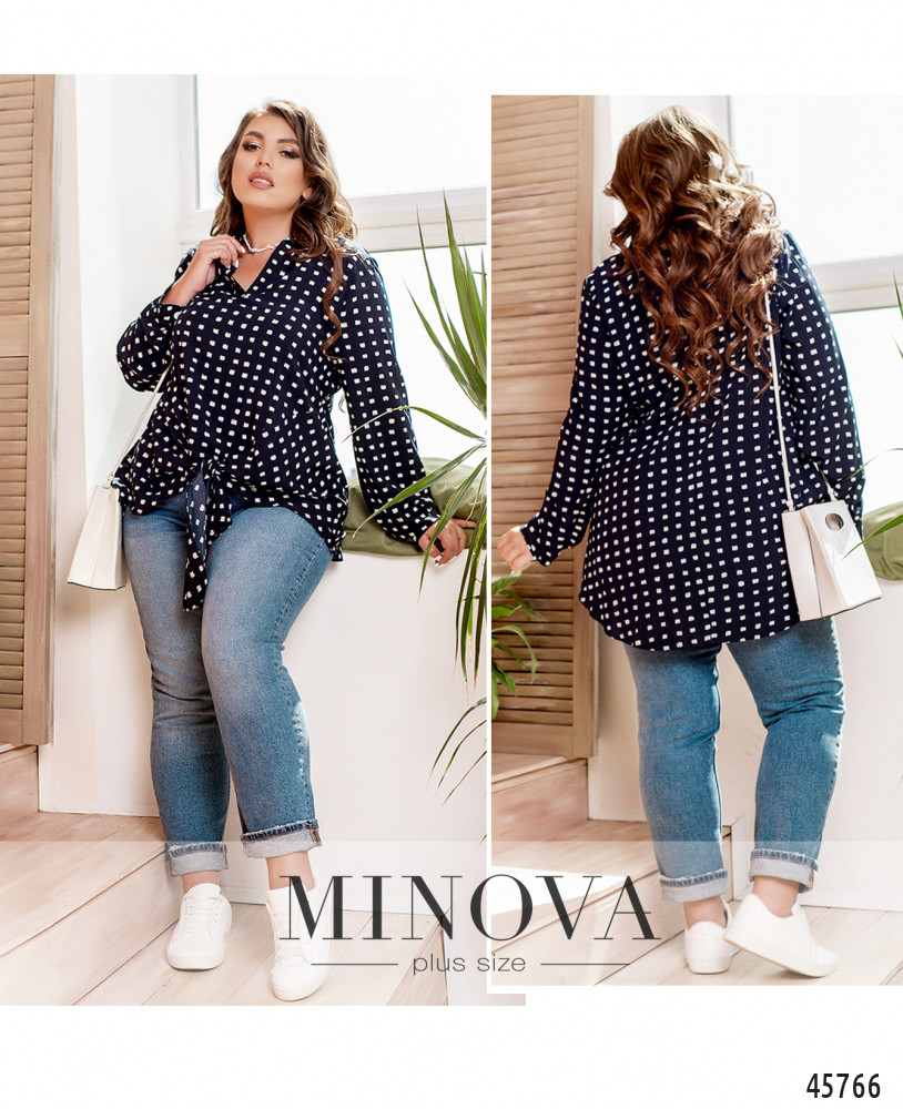 Яркая стильная рубашка с воротником и длинными рукавами с манжетами создает не только красоту, уверенность и комфорт, но и подчеркивает индивидуальный стиль. Изюминкой данной модели является ассиметричный подол, удлиненный по спинке, и завязки спереди.