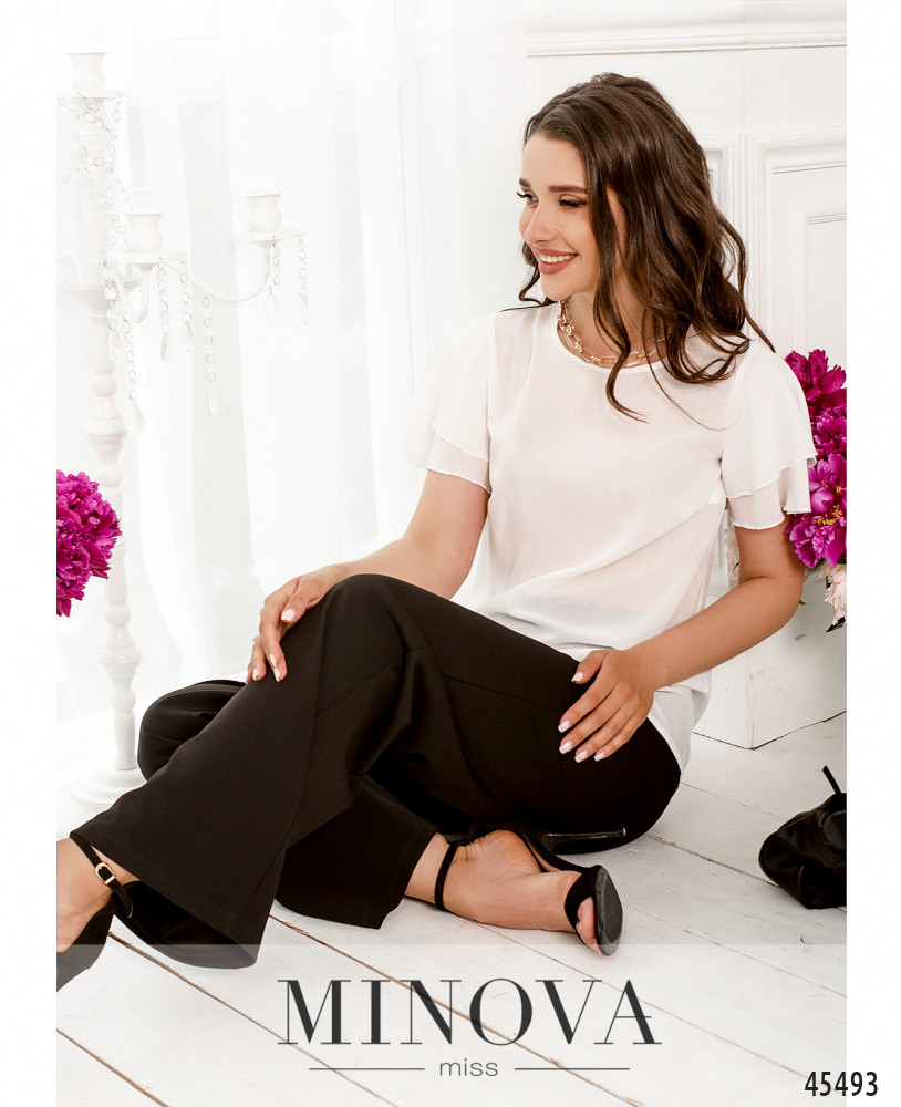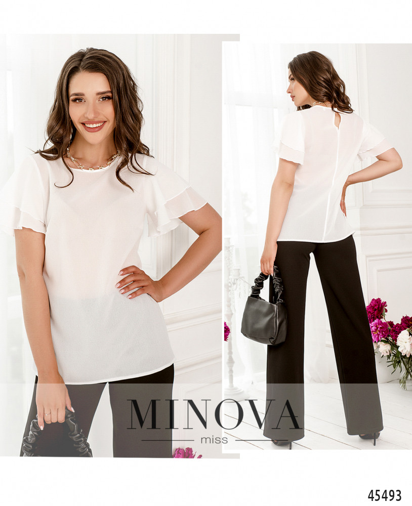 46-48 р-р: длина блузки 65см, длина рукава от плечевого шва 20см, обхват рукава 24см, ОГ - 94см, ОТ -94см, ОБ -104см.