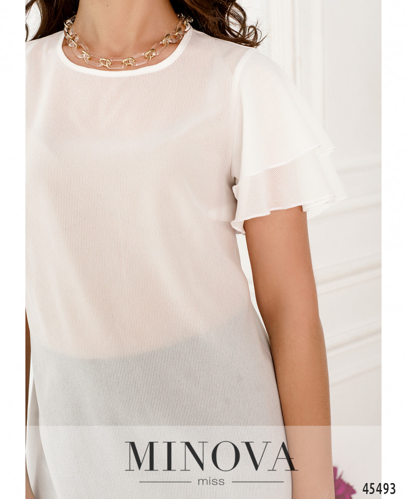 42-44 р-р: длина блузки 65см, длина рукава от плечевого шва 18см, обхват рукава 20см, ОГ - 88см, ОТ -88см, ОБ -98см.