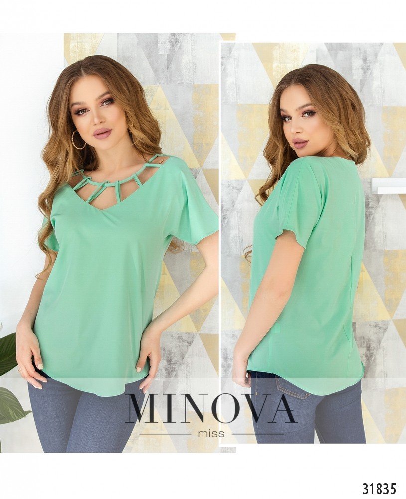 50 р-р: длина блузы 69см, длина рукава 19см, обхват рукава 34см, ОГ – 106см, ОТ – 102см, ОБ – 110см.