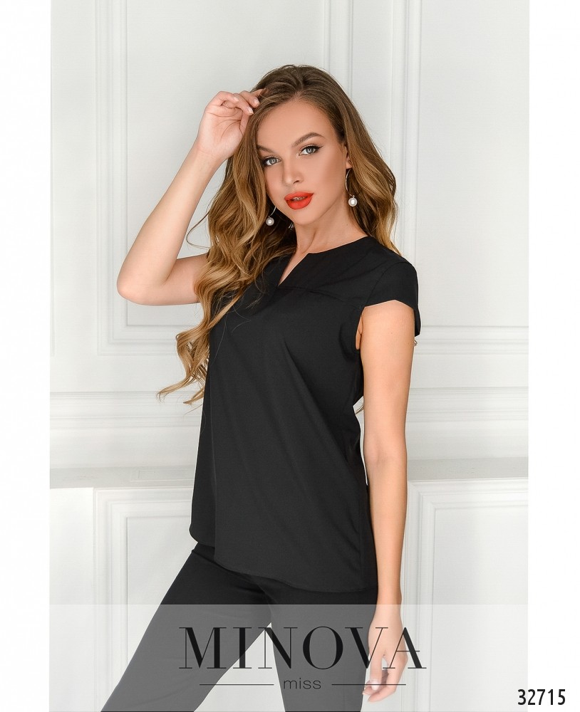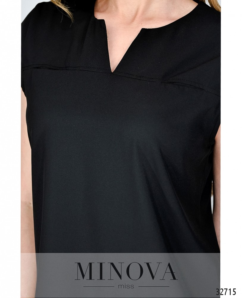 Аккуратная и строгая – это именно про блузку из новой коллекции Minova. Оптимальный вариант для случаев, когда летом нужно придерживаться официальных требований к одежде. Прямой крой уравновешивается V-образным углублением в полукруглом вырезе горловины и такими же ромбовидными вырезами для рук. Собственно рукавов нет, но плечи прикрыты, так что жарко не будет, и правила дресс-кода соблюдены. Застёжек нет, зато есть маленькие вшитые карманы на груди. Материал лёгкий, не тянется и не просвечивает.
