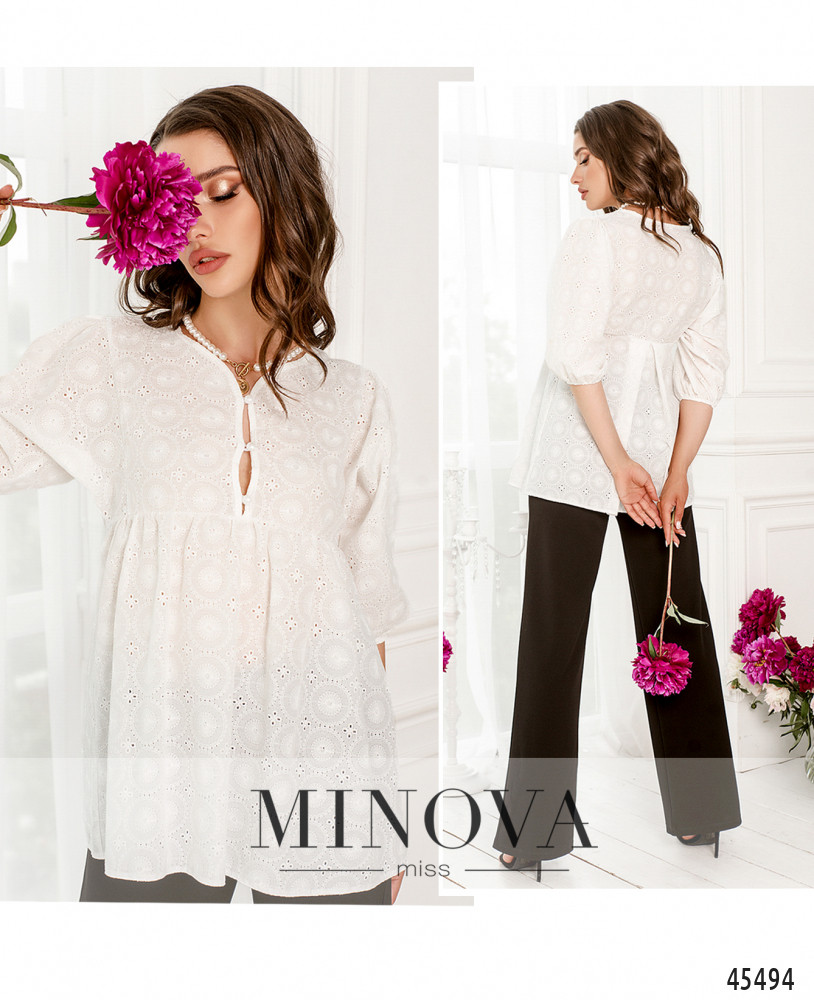 42-44 р-р: длина блузки 65см, длина рукава от плечевого шва 65см, обхват рукава 50см, ОГ - 84см, ОТ -78см, ОБ -130см.