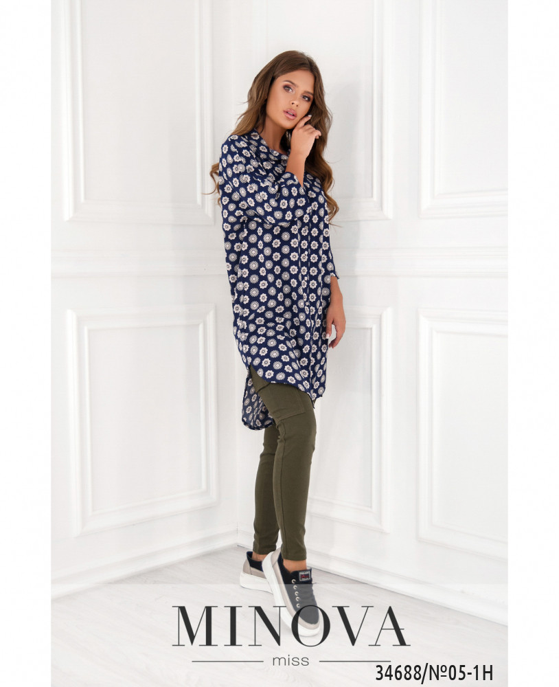 Если для вас главное – свобода и комфорт, то стоит купить для своего повседневного гардероба лёгкую тунику из нового каталога Minova. Туника пошита по фасону платья-рубашки, она длинная, мягкая и приятная к телу. Воротничок отложной, полный ряд пуговиц от воротника до подола. Рукава длиной ¾, без манжет. Подол по спине чуть длиннее. Карманов нет. Принт приятный и неброский: ряды круглых цветов, на светлом или тёмном фоне. Такой принт добавляет стройности и роста, поэтому лучше всего будет смотреться на фигуре типа «груша» или «яблоко». Можете носить тунику как самостоятельный элемент одежды или сочетать с джинсами, обувь может быть и спортивной, и классической на каблуке любой высоты. Украшение не входит в комплект. Пояс/аксессуар не входит в комплект.