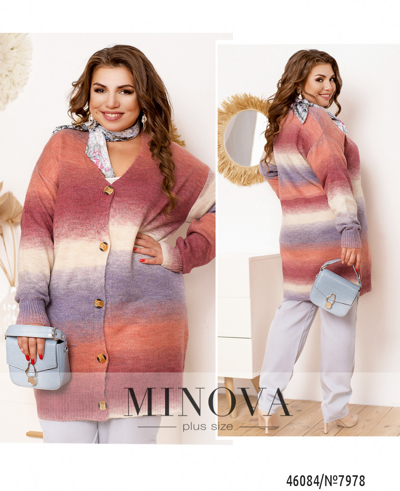Яркая вязаная кофта-кардиган порадует поклонниц практичной одежды на каждый день. Она выглядит одновременно выразительно за счет своей расцветки и лаконично за счет минималистичного фасона с рукавами с приспущенной линией плеч.