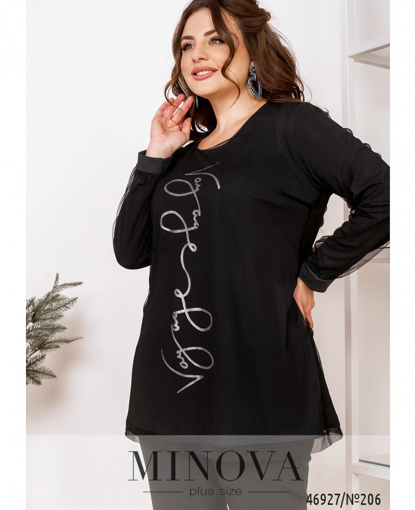 Воздушная нарядная туника хорошо садятся по фигуре, вне зависимости от ее особенностей. Двуслойная модель лаконичного кроя дополнена длинными рукавами с манжетами и ярким принтом спереди.